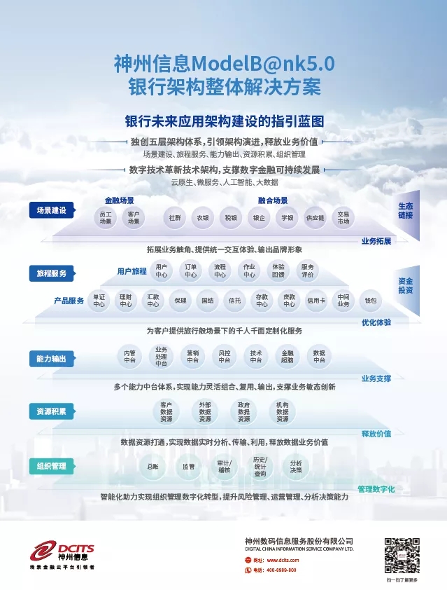 国家提出的信创工程,今年有120家银行单位参与到信创的试点当中,也为我们提出了新的命题,就是如何保证在科技架构下保障国家安全体系的建设。基于科技的变化以及银行业的变化,我们推出了ModelB@nk5.0。