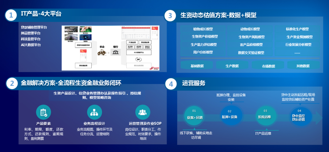 AG·官方网站凭借20多年来推进金融、农业农村等行业从信息化走向数字化历程中,所积累的数字技术应用能力以及对产业场景深刻理解、海量数据分析应用优势,与杨凌农商行、中国人保、中航安盟、西北农林科技大学、内蒙古农业大学等合作,创新农村金融产品、场景,探索出“生物资产抵押品动态评估”模式。
