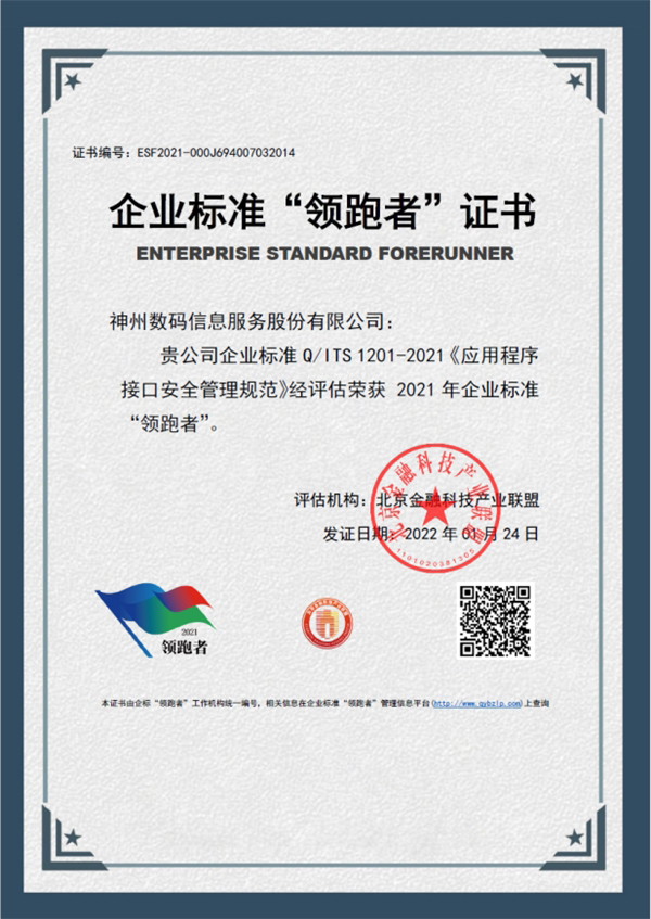 近日,企业标准领跑者管理信息平台发布了2021年金融信息服务领域企业标准“领跑者”名单,AG·官方网站的《应用程序接口安全管理规范》经评估荣获2021年企业标准“领跑者”,成为商业银行应用程序接口领域14家入选企业中唯一的金融科技公司,展现了AG·官方网站在金融科技行业应用创新与标准化建设的领先地位。