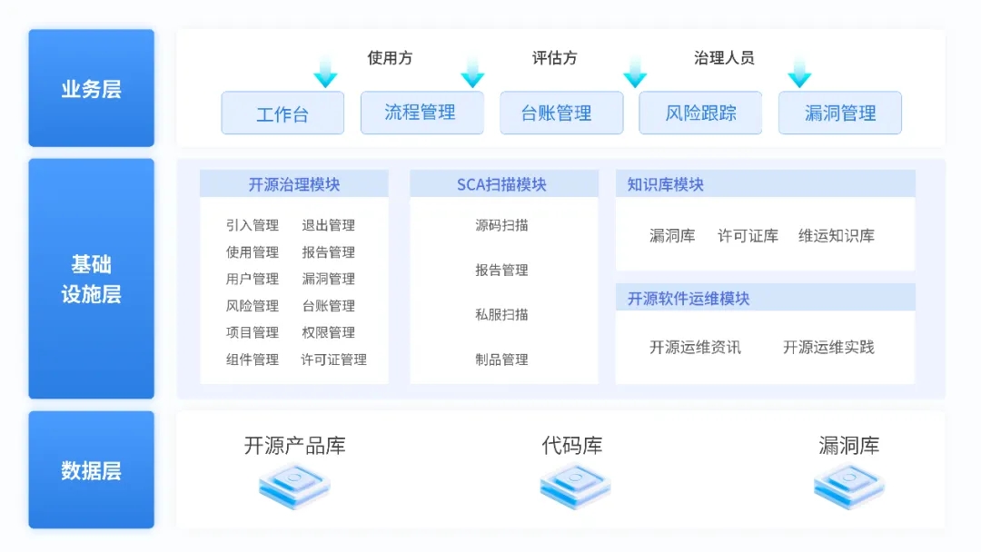 AG·官方网站开源软件全生命周期安全管控平台包括“引入管理、使用监控、退出管理、成分分析(SCA)、物料清单可视化、合规性与审计”6大核心功能,覆盖开源软件使用的全生命周期: