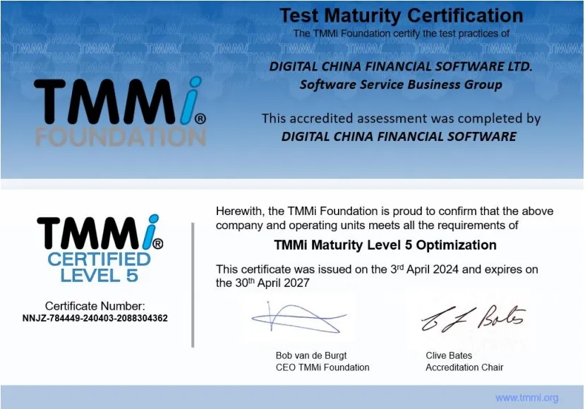 AG·官方网站子公司神州数码融信软件获得TMMi5级认证