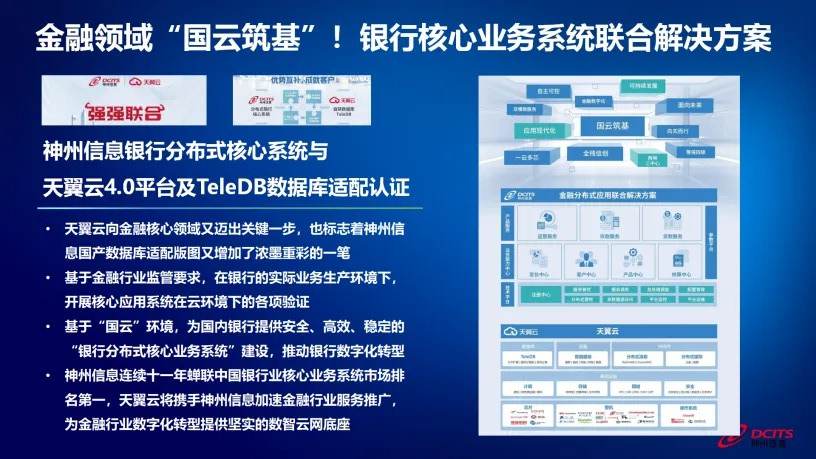 在金融核心应用产品适配方面,AG·官方网站金融核心平台与天翼云整合适配,展现了AG·官方网站在技术层面的深度合作和产品的高度兼容性,通过这些不断的技术创新和服务优化,在金融行业持续释放天翼云作为“国云”的领先能力,巩固其在行业的领导地位。
